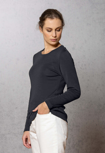 The Bay Road crew neck is a wonderfully light, long sleeve top that can be worn all year round. Wear on its own or layer up underneath or over the top! Lots of beautiful colours to choose from. Made at Weft Knitting Company, Christchurch, NZ.