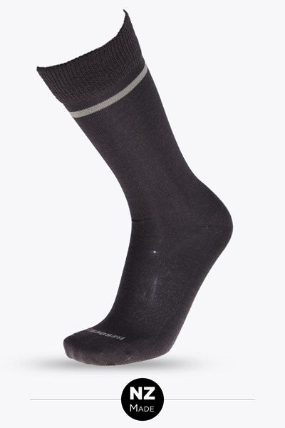 Elevate your everyday with the Men’s Merino Single Stripe Comfort Top Sock. Made from soft, breathable Merino wool, it offers natural warmth, moisture control, and all-day comfort. The gentle comfort top won’t dig in, while the timeless stripe detail adds a touch of style to this everyday essential. Made in NZ by The NZ Sock Co.