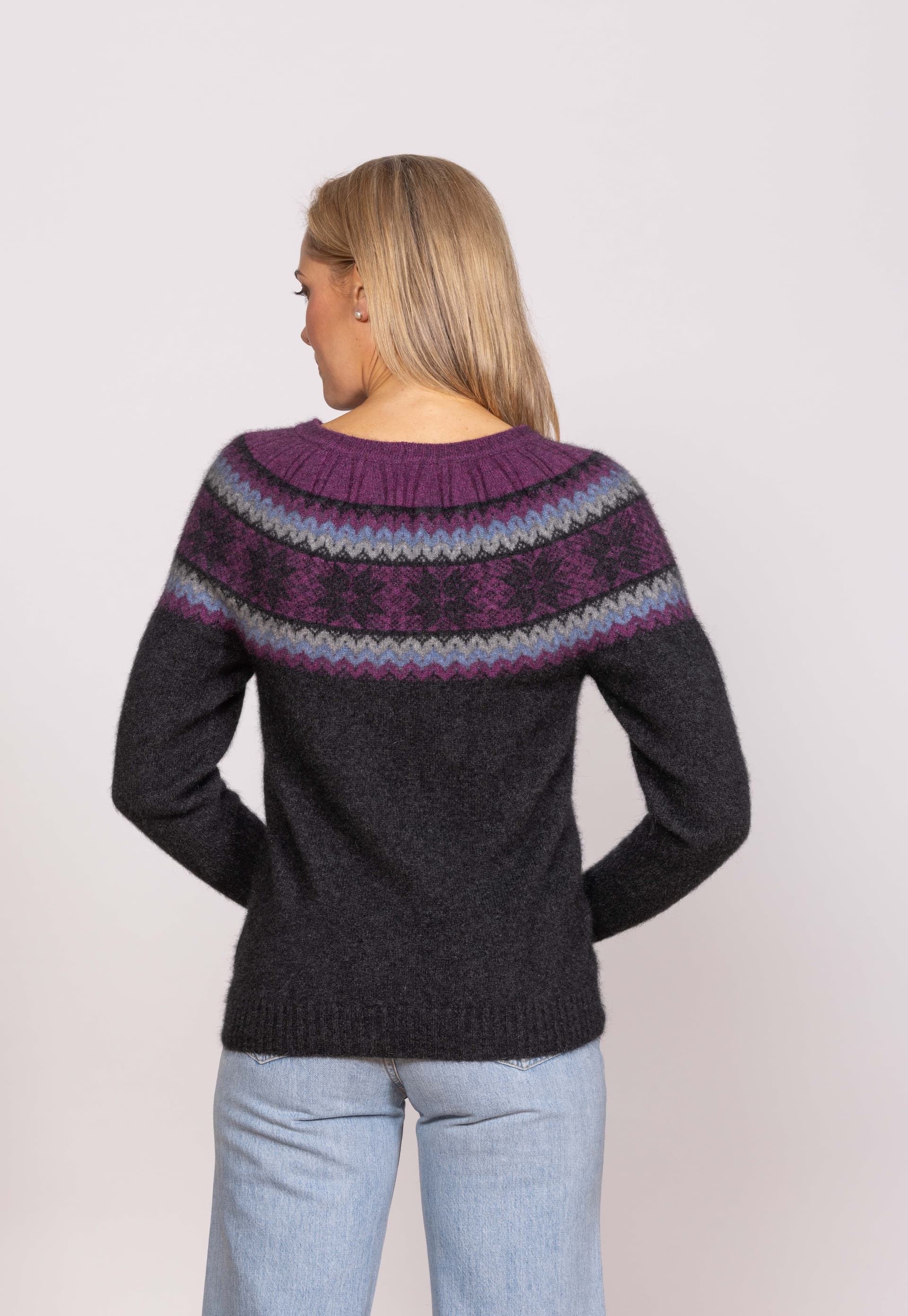 Based on a classic Norwegian cross shoulder parachute design which creates a continuous snowflake pattern in contrast colours around the yoke, the Norwdarn Sweater is the ultimate piece for winter! Made from a beautiful blend of merino, possum and silk this sweater is light but so warm. Made in NZ by Noble Wilde.