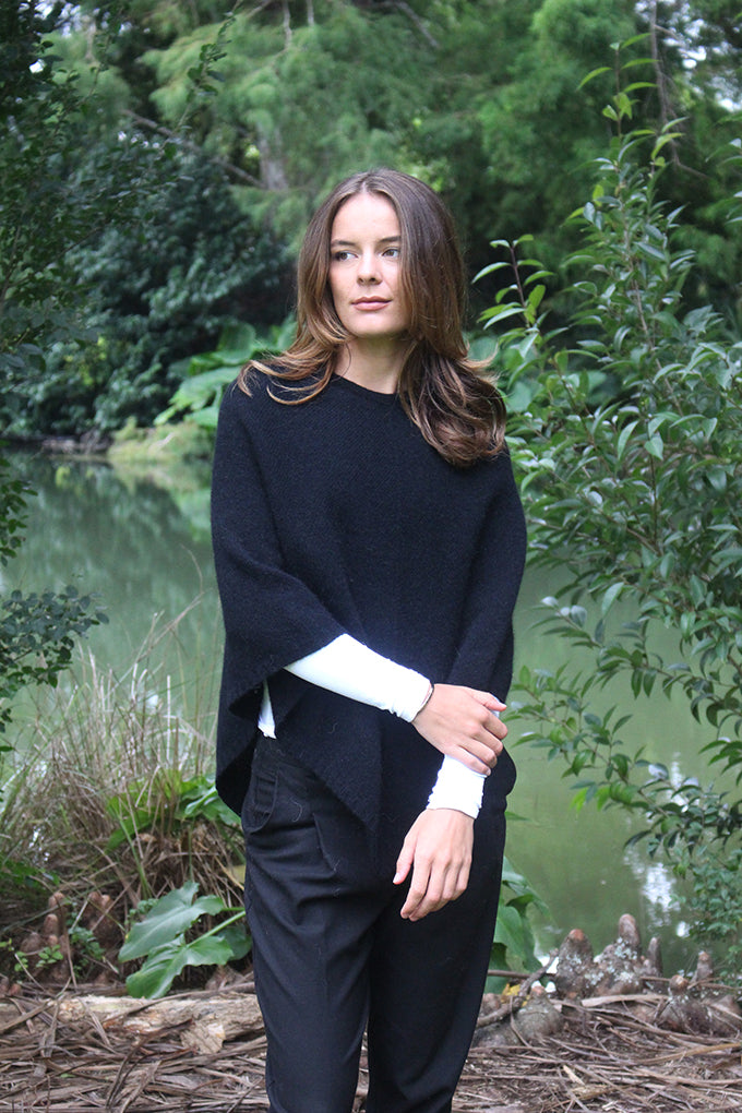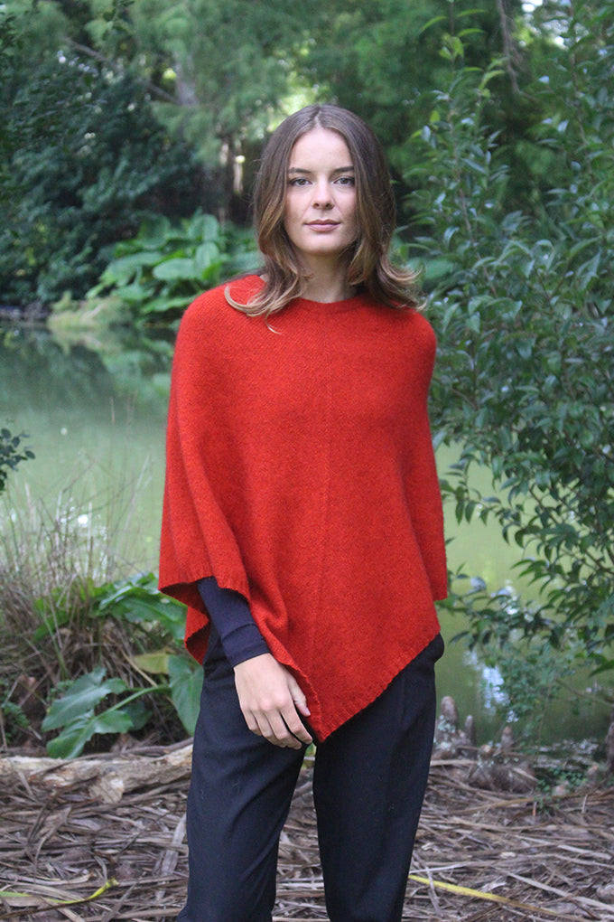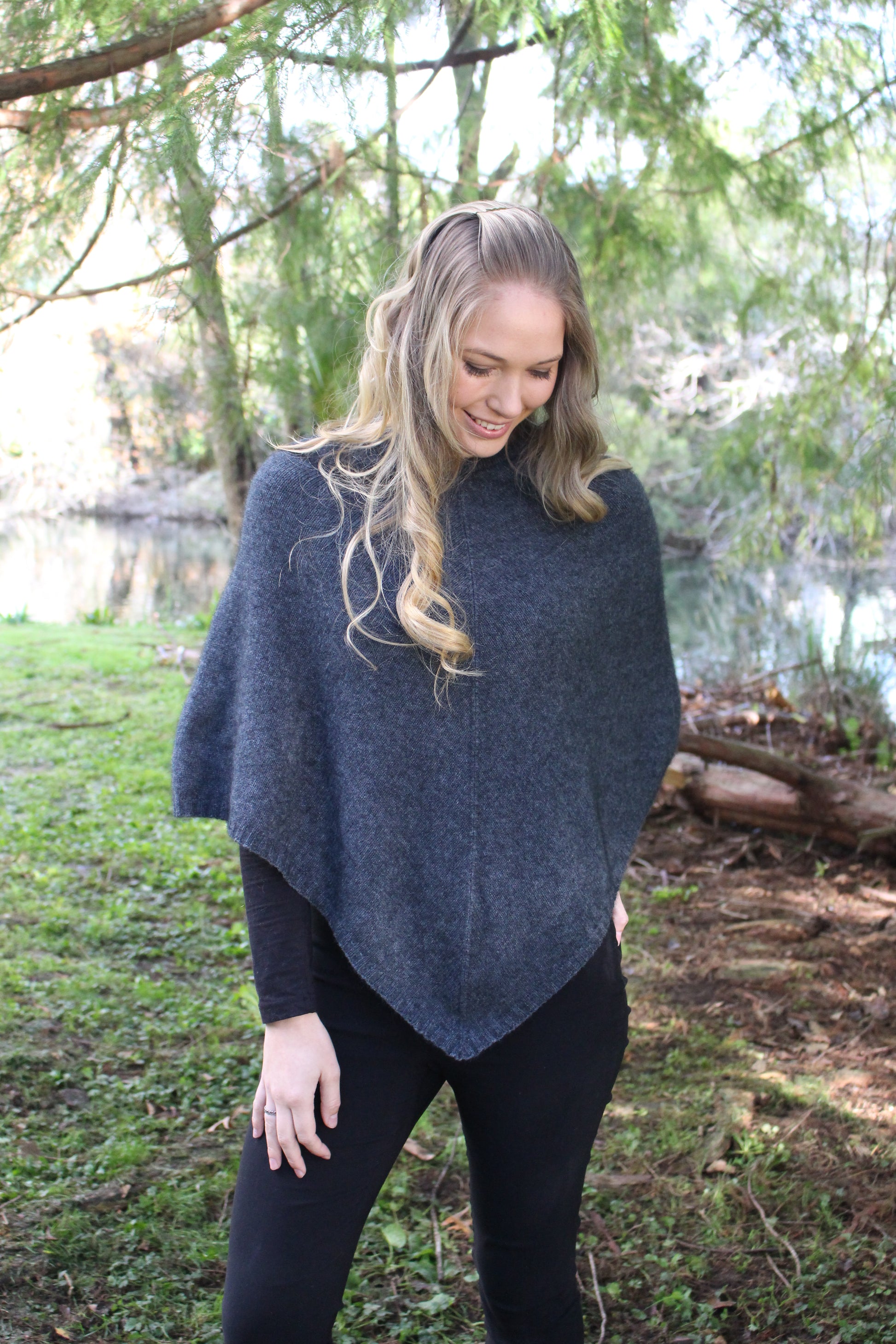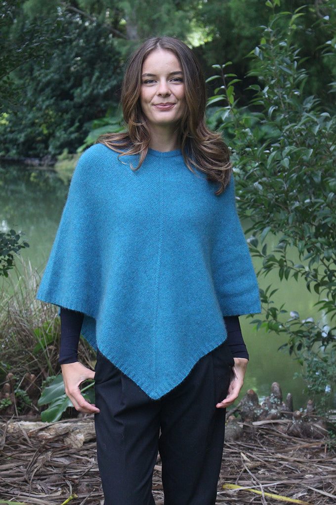 A simple plain poncho with rib neck band and hem. Available in twenty beautiful colours. Can be worn as shown in photos or with the long points down the arms to create a shorter front and back or pulled up around the neck like a scarf. Made in NZ by Lothlorian. Colours with * are custom colours to us, these are not always available.